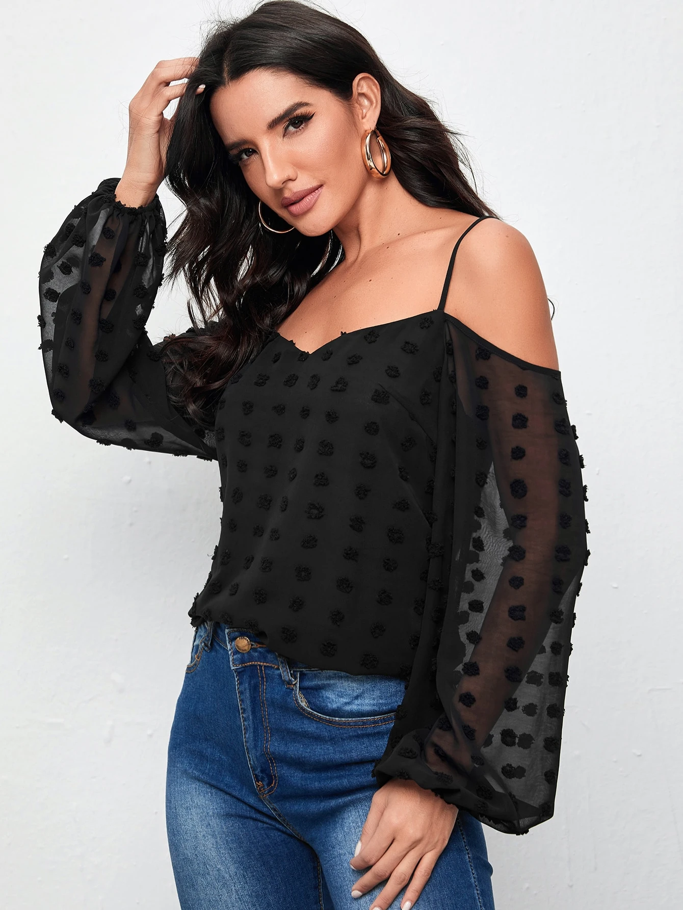 Shein have a lot of lovely blouses and shirts for women and this one above is a Black and white Polka Dot Blouse priced at £4.99, and the top above the Black Off the Shoulder top is priced at £7.49.
